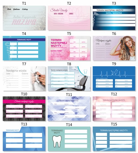 Terminarze wizyt - niezbędnik w przychodniach, klinikach, gabinetach dentystycznych czy salonach kosmetycznych. Przypominają Klientom o terminie kolejnej wizyty, pełnią dodatkowo funkcję wizytówki - zawierają bowiem podstawowe dane firmy.