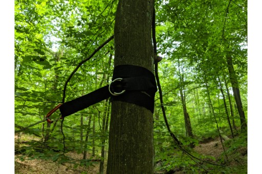 Niezwykłe ułatwienie przy wieszaniu hamaka - konstrukcja zawieszenia sprawia, że trwa to tylko kilka minut bez konieczności stosowania dodatkowych węzłów. Dwa zgrzewane kółka na taśmach zapewniają bardzo łatwą regulację i bezpieczeństwo. Taśmy są niezbędne przy wykorzystywaniu zawieszenia typu Whoopie Slings.