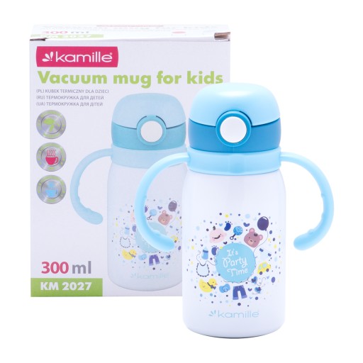 Kubek termiczny dla dzieci z dwoma uchwytami i rurką 300 ml KAMILLE KM-2027