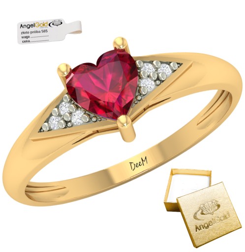 ✔️ ZŁOTY PIERŚCIONEK ZARĘCZYNOWY SERCE RUBIN PR. 585 14