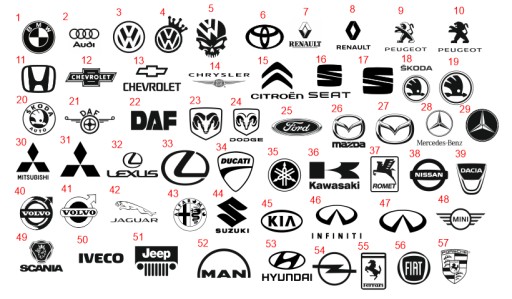 - Szeroki wybór w logach aut m.in. : ( audi bmw vw opel peugeot honda mercedes seat skoda kia toyota renault oraz wiele innych)