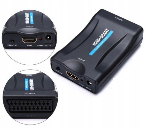- Konwersja sygnału cyfrowego HDMI na sygnał analogowego EURO/SCART