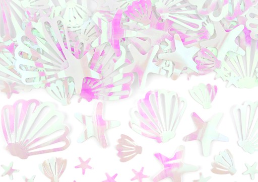 KONFETTI OPALIZUJĄCE OZDOBNE W KSZTAŁCIE ROZGWIAZD MUSZELEK IDEALNE JAKO DEKORACJA STOŁU.
