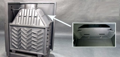 Maksymalne wykorzystanie ciepła dzięki gęsto rozmieszczonym radiatorom oraz ściankom paleniska wykonanym z wysokiej jakości żeliwa o grubości 8 mm.