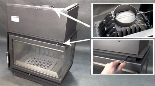 Zwiększona wydajność pracy wkładu poprzez manualną regulację ciągu komina przy użyciu wbudowanego szybra.