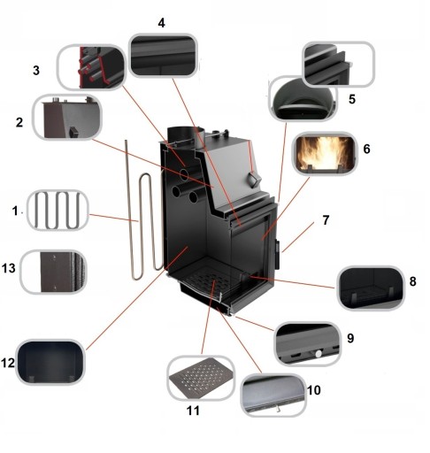 - Płomieniówki - zwiększają powierzchnię wymiany ciepła z wodą