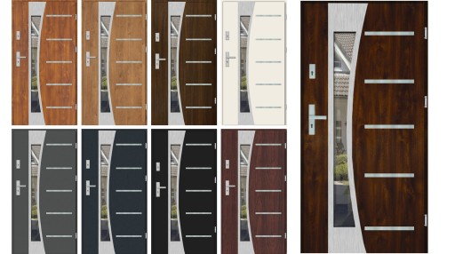 • drzwi z blachy pokrytej folia dekoracyjną PCV pasującą do stolarki okiennej ,