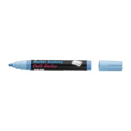 Marker z płynną kredą, do pisania po tablicach czarnych, białych, po szkle i powierzchniach plastikowych. Zmywalny wodą, jak zwykła kreda – np. tradycyjną. Nasączalne końcówki fibrowe, bezwonny tusz pigmentowy, nie zawiera xylenu.