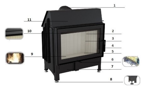 7. Materiał: stal kotłowa, na bokach wkładu i plecach radiatory