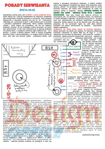 Nie jest tajemnicą (i wielu użytkowników doświadczyło tego „na własnej skórze”) - że płyta US-25 czy to w wersji oryginalnej czy jej zamiennik „zgodny z oryginałem” - jest wrażliwy na przeciążenia, zużycie silnika podajnika oraz przepięcia w sieci energetycznej. Znane są przypadki uszkodzenia płyty w wyniku np. „sklejenia” drutu w uchwycie - z końcówką prądową - i pomimo tego próby wysunięcia drutu napędem silnika (czy to celowo czy przez nieuwagę), częściowe zużycie silnika podajnika, polegające na zużyciu komutatora, częściowym zużyciu szczotek, zapyleniu wnętrza silnika pyłem ze szczotek, powodują zwiększony pobór prądu i większe obciążenie układu sterującego, który jest wrażliwy na przeciążenia. Także zużyty lub zanieczyszczony wkład przewodu spawalniczego, rzadko używany i pokryty nalotem drut spawalniczy, zastosowanie dłuższego przewodu spawalniczego - wszystko to zwiększa pobór prądu podajnika, a w konsekwencji zwiększa ryzyko uszkodzenia płyty sterującej.