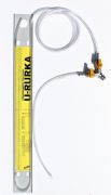 U-rurka hydrostatyczny manometr cieczowy to urządzenie bardzo proste w swej konstrukcji. Służy do pomiaru ciśnienia w zakresach 0-5 kPa (50 cm słupka wody) i 0-10 kPa (100 cm słupka wody).Urządzenie to pozwala też sprawdzić szczelność instalacji gazowej,wodnej,c.o. w tym celu przez zawór widoczny na fotografii wdmuchujemy odpowiednią ilość powietrza - aż do wychylenia poziomu wody w założonym zakresie -jeżeli stan ten utrzymuje się to znaczy ,że instalacja jest szczelna.