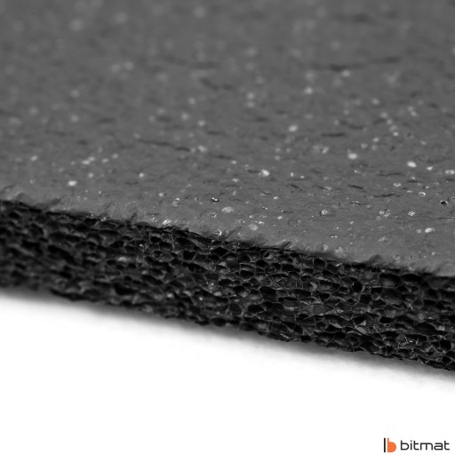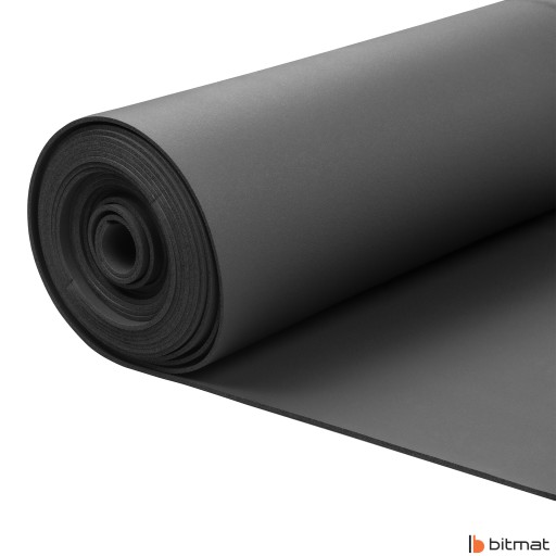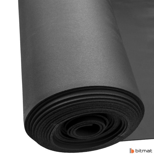 Mata wygłuszająca K6bk Bitmat - pianka izolacyjna gumowa bez kleju o strukturze komórek zamkniętych, posiada wysokie właściwości akustyczne oraz izolacyjne.