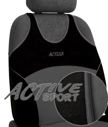 Koszulki samochodowe „ACTIVE SPORT Materiał” wykonane są z wysokogatunkowych materiałów typu WELUR. Tkaniny te są bardzo miękkie w dotyku, jednocześnie wytrzymałe i łatwe w utrzymaniu czystości. Dodatkowo aby zwiększyć trwałość produktu materiały są podlaminowane pianką i stabilizującą podszewką. Między łączeniami materiału wszyta jest lamówka, która polepsza jakość szwów oraz sprawia, że pokrowce dopasowują się do kształtu fotela. Koszulki „ACTIVE SPORT Materiał” występują w dwóch wzorach oraz w siedmiu wariantach kolorystycznych. Zdobione są estetycznym napisem "ACTIV SPORT"