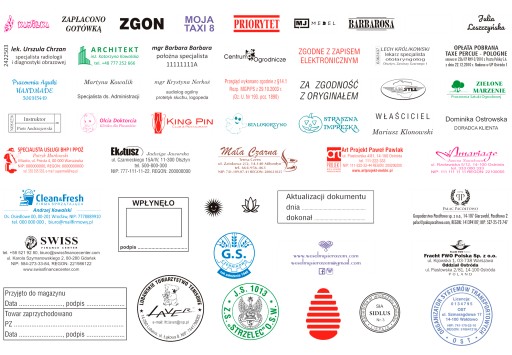 Można je dowolnie spersonalizować umieszczając logo firmy, czy motyw przewodni. Zamów dodatkową usługę personalizacji pieczątki i napisz nam wytyczne, a my wykonamy projekt. Istnieje możliwość uzyskania obudowy Twoją reklamą, zdjęciem, kodem QR lub inną grafiką. Poniżej przykładowe realizacje:
