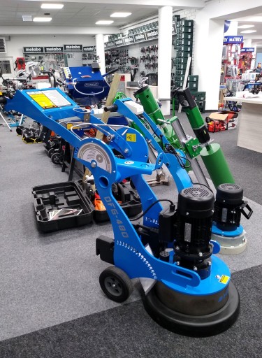 - Szlifierka podłogowa do szlifowania, usuwania pozostałości po kleju i przygotowania podłoża na dużych powierzchniach betonowych