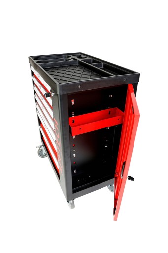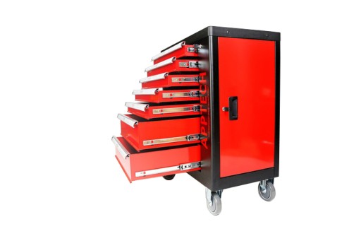 Szafka narzędziowa to sprzęt potrzebny w każdym warsztacie samochodowym , garażu czy domu. Szafka posiada 7 szuflad dodatkowo szafka wyposażona jest w drzwiczki boczne z półką.Produkt został wykonany z najwyższej jakości stali a krawędzie zewnętrzne jak i wewnętrzne zostały podwójnie wzmocnione.Szafka stoi na 4 mocnych kółkach 2 stałych oraz 2 skrętnych z blokadami.Produkt wysokiej jakości zapewni CI bezproblemowe użytkowanie