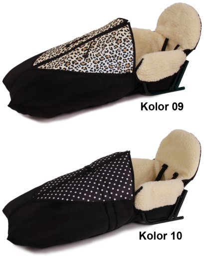- śpiworek nakładany jest na oparcie sanek, spód mocowany jest do siedziska za pomocą gumy