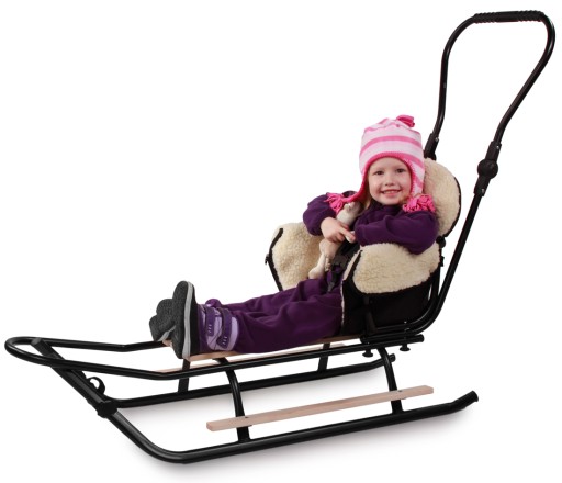 Polskie SANKI z wysokim oparciem i pchaczem+ 2-funkcyjny wełniany ŚPIWÓR