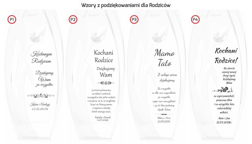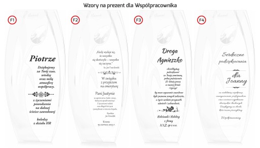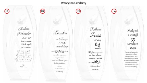 Teksty we wzorach są w całości edytowalne. Wskaż nr wybranego wzoru i całkowicie(lub częściowo) zmień treść tekstu podając swoje życzenia/dedykację.