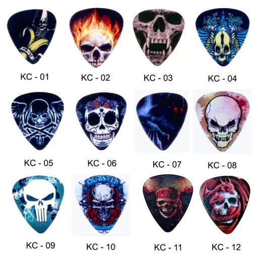 Kostki zostały tak zaprojektowane, by ukazać różne wzory czaszek. Są one przyjemne nie tylko dla gitary, ale też dla oka.