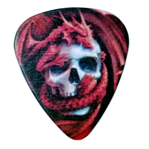 Mam do sprzedania kostki gitarowe z pięknym motywem Czaszki o grubości 0.46 mm i 0.71 mm, bardzo dobra jakość, sam używam identycznych. W zestawie otrzymasz 10 sztuk.