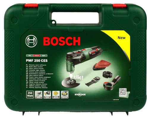 Narzędzie uniwersalne PMF 250 CES firmy BOSCH to jedno z najnowszych urządzeń firmy BOSCH. Narzędzie to przeznaczone jest do piłowania i przycinania materiałów drewnianych i drewnopochodnych, tworzyw sztucznych, gipsu, metali nieżelaznych i elementów mocujących (gwoździ, klamer, itp.). Idealnie nadaje się do obróbki ceramicznych płytek ściennych i do szlifowania oraz skrobania na sucho różnych powierzchni. W szczególności przystosowane jest do obróbki blisko krawędzi, np. przy ścianie, czy w miejscach trudno dostępnych i ciasnych.