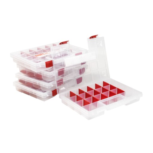 Organizery z serii NorT wyróżnia transparentna powierzchnia, umożliwiająca przejrzyste i dokładne sortowanie rozmaitych drobiazgów. Zawartość jest jeszcze lepiej widoczna. Rozmiar i ilość przegródek można regulować, a przechowywane przedmioty nie mieszają się ze sobą. Dzięki solidnej rączce organizer można bez trudu przenosić.