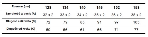 Dostępne w rozmiarach: 128 cm – 158 cm