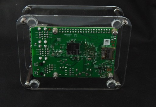 Płytka Raspberry Pi jest przykręcana do dna obudowy za pomocą 4 śrubek z dystansami oraz posiada 4 stopki silikonowe.