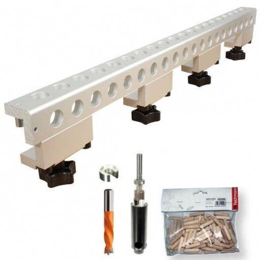 Uniwersalny przyrząd do wytaczania jest przeznaczony do dokładnego i skutecznego tworzenia połączeń kołkowych w elementach mebli. Osiągnij wysoką dokładność i wydajność. Poszczególne otwory są rozmieszczone w odległości 32 mm, co odpowiada normie Euro dotyczącej wytaczania.