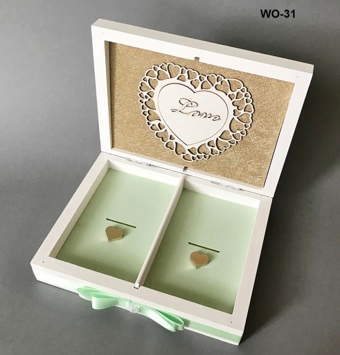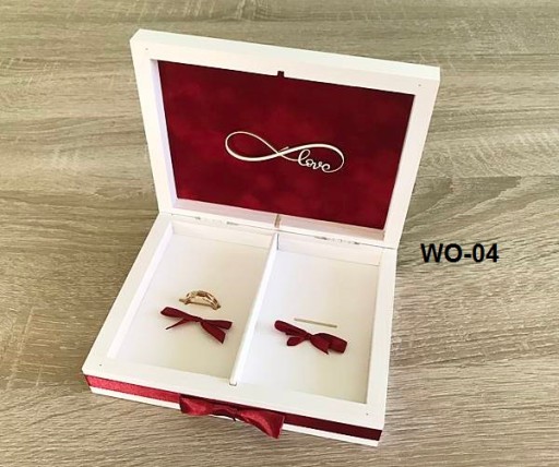 Pudełko na obrączkI wykonane z drewna , malowane na biało