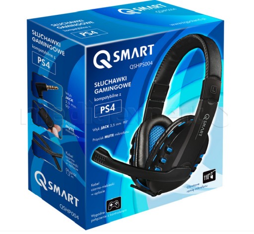 Zestaw słuchawkowy QSmart QSHPS004 został zaprojektowany do konsoli PS4 i daje wyjątkowy komfort podczas użytkowania. Słuchawki QSmart zaprojektowano tak, aby były wytrzymałe i doskonale dopasowywały się do głowy. Mikrofon daje możliwość komunikowania się z przyjaciółmi. Stworzone zostały dla uzyskania maksymalnego komfortu użytkowania nawet przy wielogodzinnej zabawie podczas przygód w grach komputerowych. Gry stają się bardziej realistyczne i interesujące, a wszystkie manewry łatwiejsze do wykonania a dzięki doskonałemu dźwiękowi Twoje zmysły zostaną wypełnione szczegółami płynącymi z multimedialnej rozrywki i wirtualnego świata. Zestaw posiada kołowy potencjometr regulacji głośności oraz klawisz "odcięcia" mikrofonu -MUTE oraz gumowane wykończenie słuchawek.