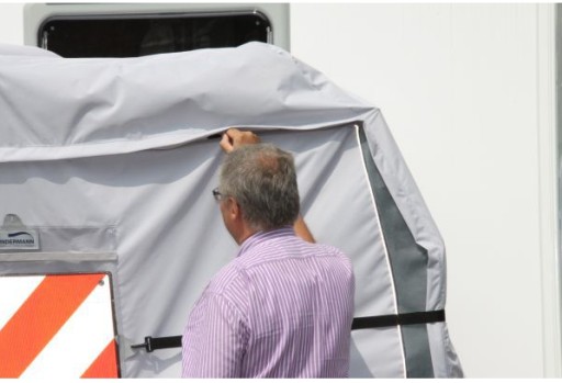 - Umożliwia wyciągnięcie rowerów bez ściągania całego pokrowca