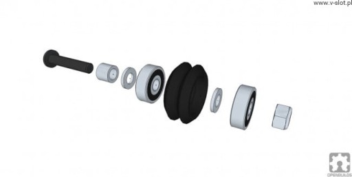 Koło to ma kształt podwójnego v, który pozwala na jazdę na V-Slot ™, jak również na OpenRail.