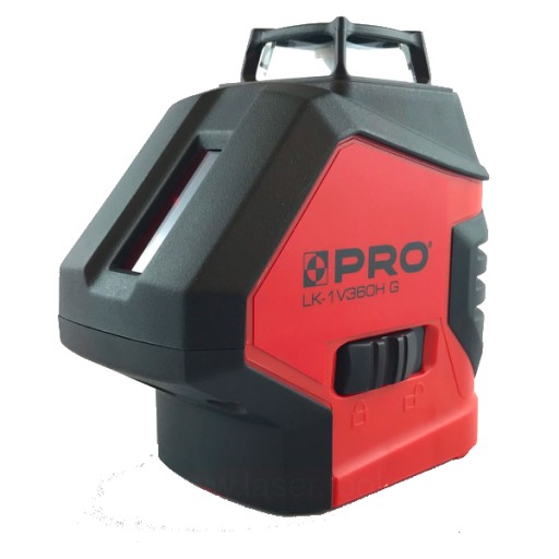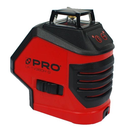 - Laser krzyżowy LK-1V360H G generuje jedną wiązkę poziomą 360° oraz jedną wiązkę pionową, przecinające się pod kątem 90°.