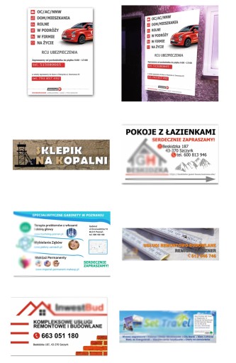 PRZYKŁADOWE REALIZACJE: ULOTKI, PLAKATY, BANERY, WIZYTÓWKI: