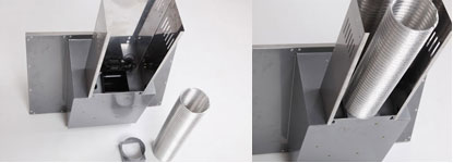 Aby okap prawidłowo pracował jako wyciąg wystarczy nałożyć redukcje na turbinę, a na redukcjie rurę spiro. Następnie rozciągnąć rurę i podłączyć do kanału wentylacyjnego
