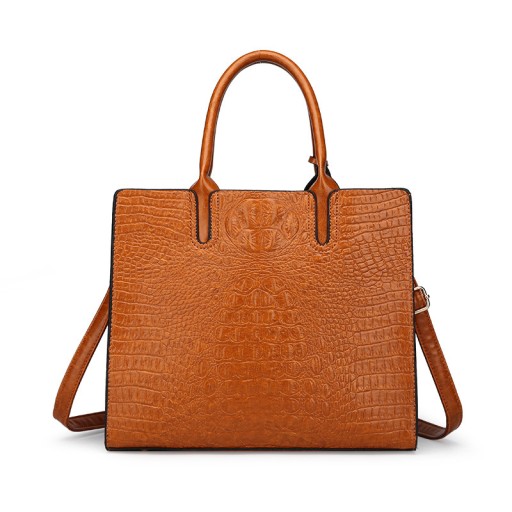 Interesujący model torebki o klasycznym kształcie prostokąta, przypominający swym wyglądem aktówkę, którego niewątpliwym walorem jest ekoskóra, z której został wykonany – o zdecydowanych barwach i delikatnym połysku oraz strukturze przypominającej skórę aligatora.