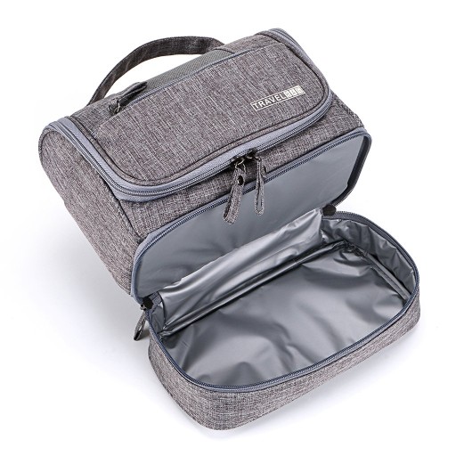 Kosmetyczka podróżna, którą można zawiesić jako wygodny organizer? To rozwiązanie idealne dla mobilnych kobiet, które - także w podróży – chcą o siebie doskonale zadbać. Ucieszy ona również modnego i dbającego o siebie mężczyznę. Złożona kosmetyczka to estetyczna walizeczka, a w wersji rozłożonej staje się ona niemalże łazienkową szafką. Wygodę takiego rozwiązania doceni każdy podróżnik oraz osoby których praca związana jest z częstymi wyjazdami. Kosmetyczka jest wykonana z nieprzemakalnego materiału. Można ją swobodnie zawiesić w hotelowej łazience. Sprawdzi się także w zaciszu mieszkania.
