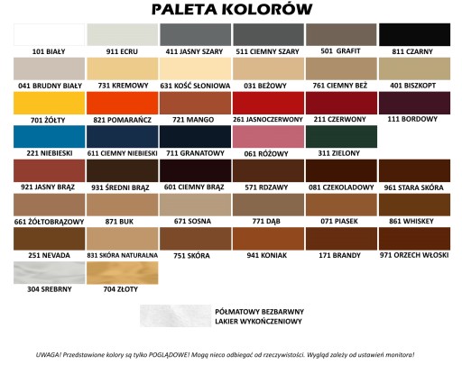 PALETA DOSTĘPNYCH BARW PONIŻEJ