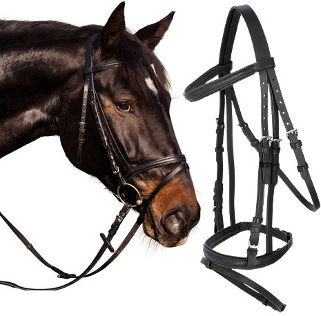 Wysokiej jakości ogłowie dla konia wykonane z dobrej jakości skóry. Naczółek i nachrapnik angieslki wykonano z czarnym podszyciem. Ogłowie zawiera wodze parciane w komplecie. Nie zawiera wędzidła. Uzda to główna część rzędu jeździeckiego, inaczej mówiąc to uprząż rzemienna na głowę konia. Głównym zadaniem ogłowia jest utrzymanie kiełzna (lub paska naciskającego na nos w wypadku ogłowi bezwędzidłowych) we właściwym miejscu w pysku konia.