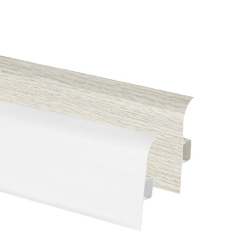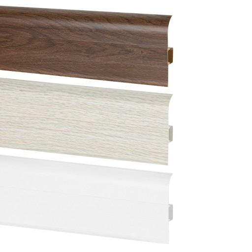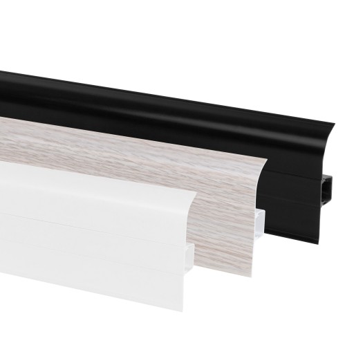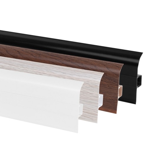 Nasze listwy dzięki elastycznym krawędziom, wykonanym z gumek silikonowych, idealnie maskują nierówności podłogi i ściany. Jest to listwa szybkiego montażu z wyjmowanym środkiem, miejscem na przewody elektryczne i RTV.