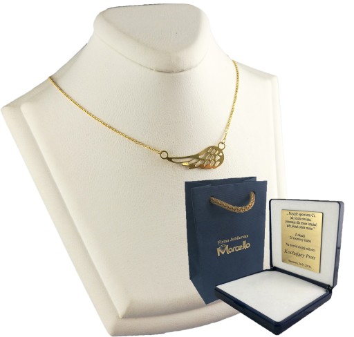 Przedmiotem sprzedaży jest złoty komplet ,łańcuszek wraz z wisiorkiem. Produkt jest nowy, zapakowany w eleganckie pudełeczko z dedykacją na życzenie klienta. Wyrób został precyzyjnie wykonany z należytą dbałością o detale.Całość została wykonana ze złota próby 333 . Każdy złoty produkt o masie powyżej 1 gram jest przebadany w Państwowym Urzędzie Probierczym pod kątem jakości złota i ma wybitą próbę zgodnie z Polskim prawem probierczym więc wybierając naszą ofertę masz 100% pewności że kupujesz wyrób oryginalny i faktycznie w całości wykonany ze złota