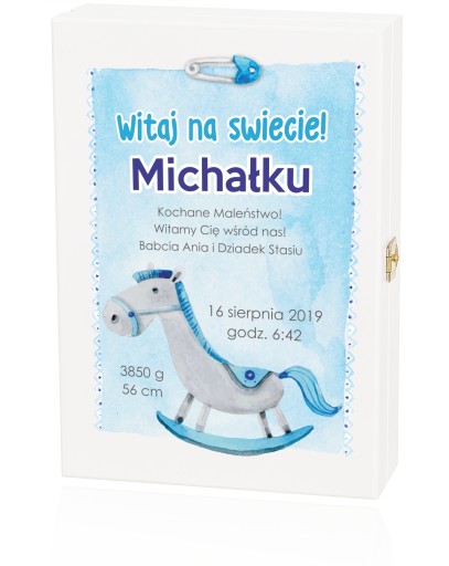 Komplet zapakowany w przepiękne drewniane pudełko z indywidualnym kolorowym nadrukiem, który spersonalizujemy zgodnie z zamówieniem!