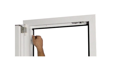 Nową uszczelkę wciskamy w rowek montażowy. Uszczelka powinna być troszeczkę dłuższa niż długość rowka montażowego w celu łatwiejszego przycięcia jej w narożach.