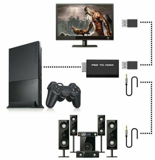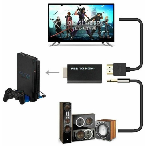 Konwerter umożliwia podłączenie konsoli Play Station 2 z telewizorem lub monitorem. Dzięki temu adapterowi możesz przenieść obraz na telewizor HD i cieszyć się wielkim obrazem. Adapter przesyła zarówno obraz jak i dźwięk, wystarczy włożyć go do złącza AV w konsoli i podłączyć kablem HDMI to telewizora/monitora. Dodatkowo adapter wyposażony jest w złącze AUDIO do którego osobno można podłączyć słuchawki, głośniki lub inny wzmacniający dźwięk sprzęt. Obsługuje tryby wyświetlania PS2 HDMI (480i, 576i, 480p). Działa na zasadzie plug & play - nie wymaga specjalnej instalacji, podłączasz i działa. Takie rozwiązanie zapewnia przyjemną grę w jakości Full HD.