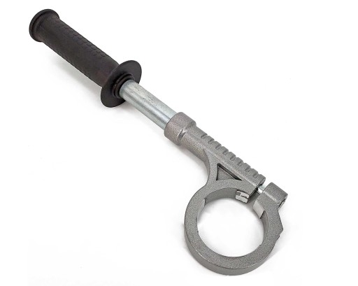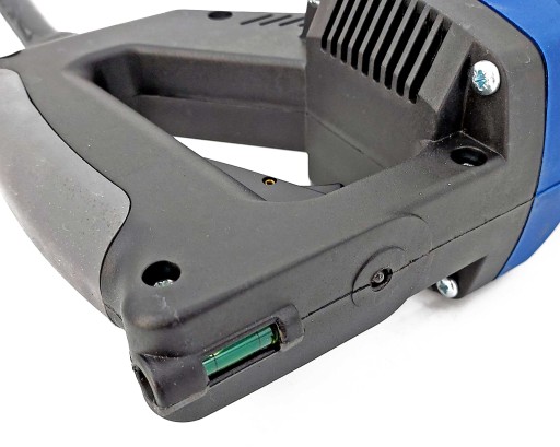 - Tylny uchwyt roboczy umożliwiający wiercenie z ręki, wyposażony w poziomicę oraz wskaźnik przeciążeniowy.