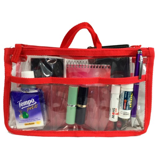 Wykonany jest z przezroczystego tworzywa dzięki czemu już po otwarciu torby bez problemu znajdziemy to czego szukamy. Dodatkową zaletą jest to, że w razie rozlania jakiegoś kosmetyku jego zawartość nie rozprzestrzeni się za resztę organizera ani torebki.
