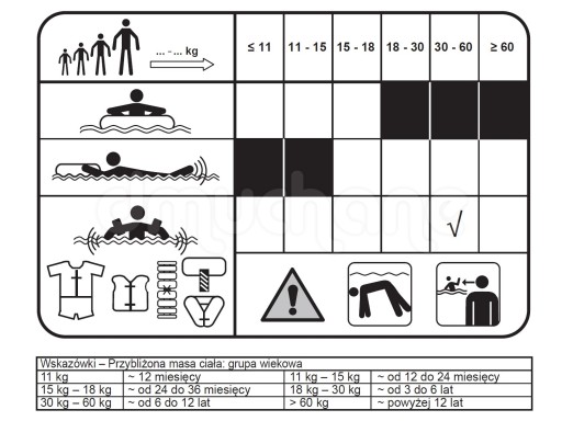 Ostrzeżenie: Do używania jedynie w wodzie, na głębokości, na której dziecko wyczuwa dno pod nogami, oraz pod nadzorem osoby dorosłej.