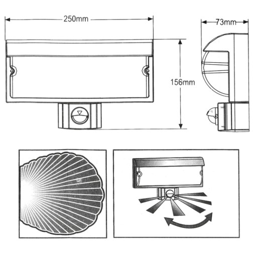 Wysokiej jakości, nowoczesna lampa ścienna LED 6W nieoślepiająca w kolorze czarnym z miniaturowym czujnikiem ruchu PIR. Podstawową cechą lampy jest mocne lecz nieoślepiąjące światło z regulowanym kierunkiem padania. Wbudowany sensor posiada regulację czujnika zmierzchowego, umożliwiającą załączanie lampy dopiero po zapadnięciu zmroku oraz regulowany timer podtrzymujący świecenie od kilku sekund do kilku minut od ustania ruchu.